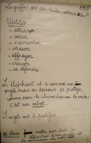 Chaque groupe a présenté son travail à la classe. L’enseignante en a profité pour noter le contenu des interventions orales.