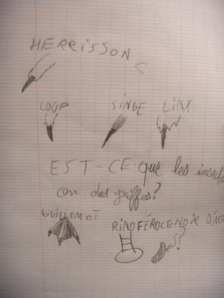 NB : si les enfants n'ont pas noté le nom de l'animal, le pointer et préciser l'importance que cela a dans un dessin d'observation