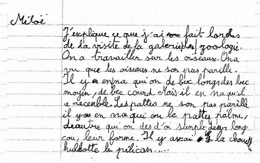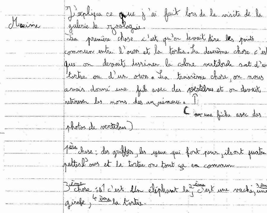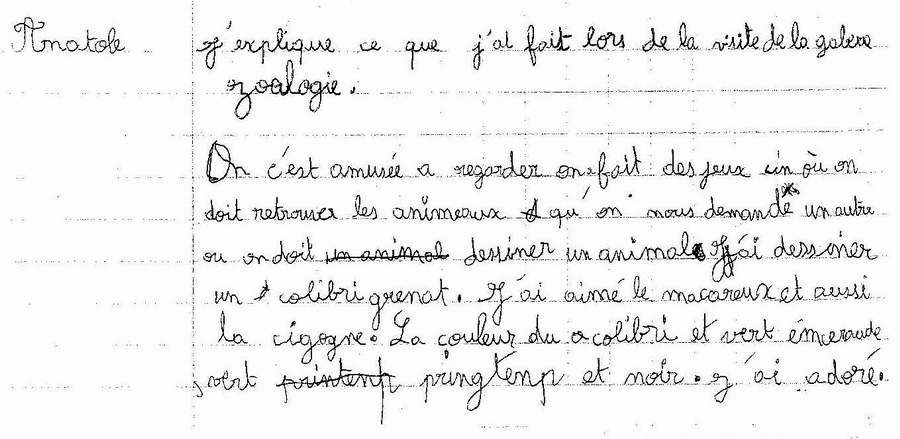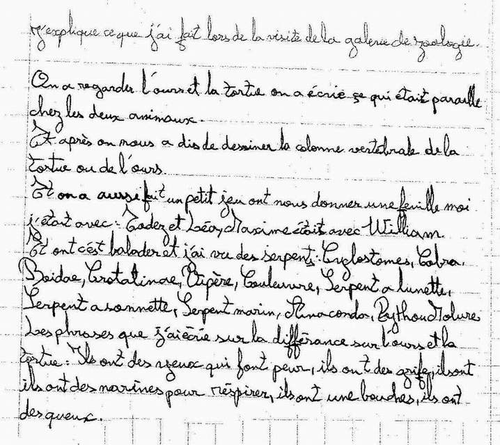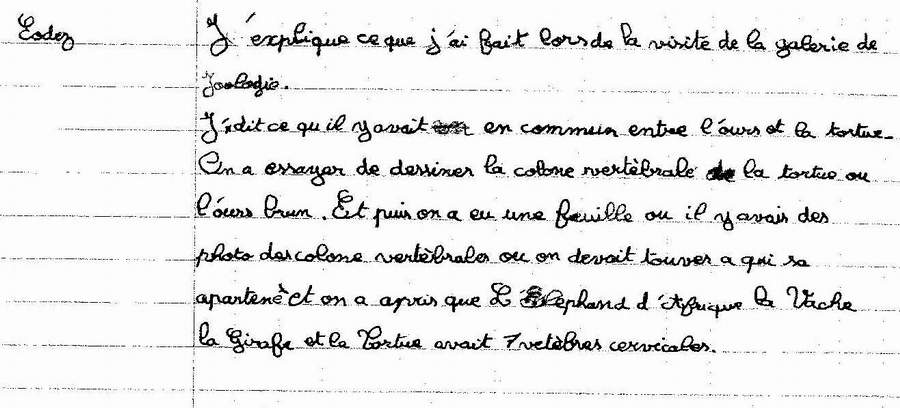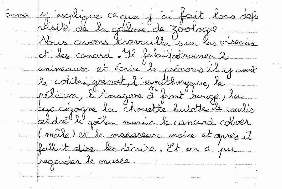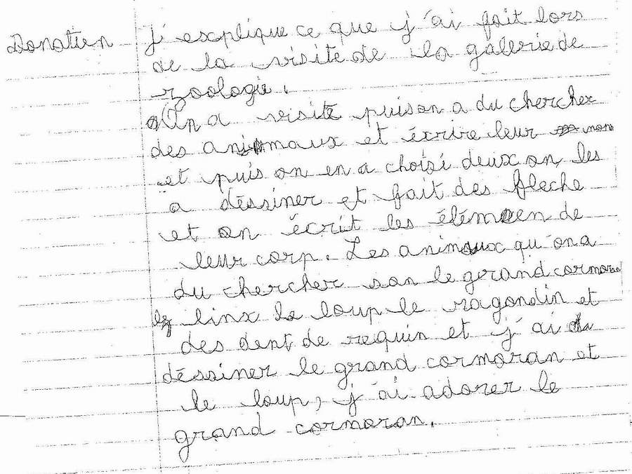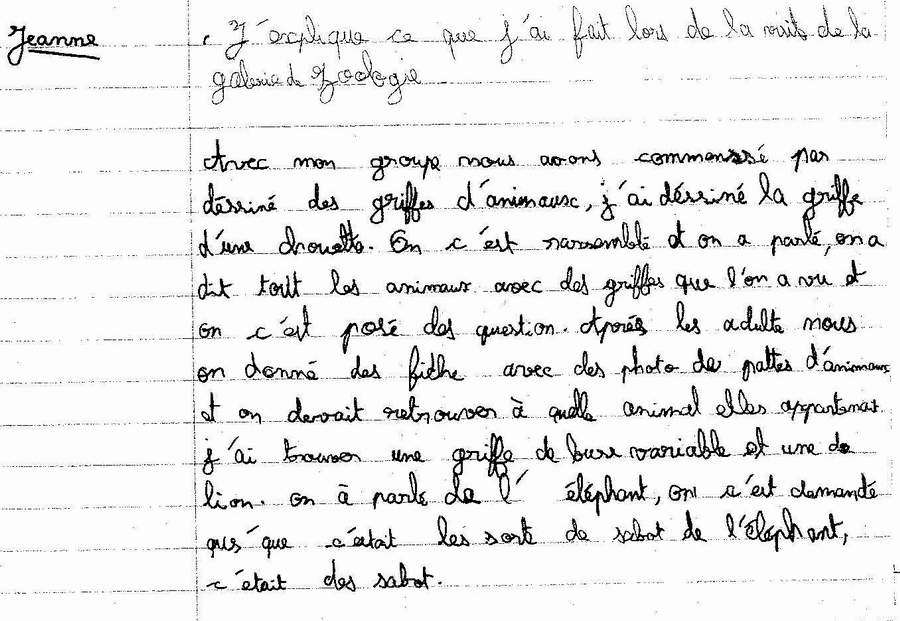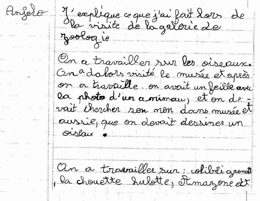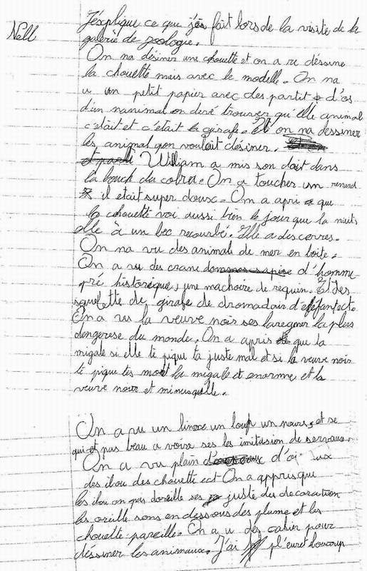 enfant a expliqué par écrit ce qu’il avait fait lors de la visite de