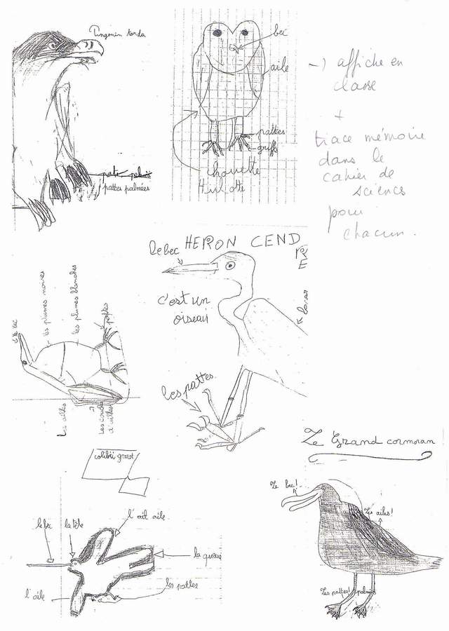 qui sera sur une affiche en classe) et de leurs dessins d’oiseaux